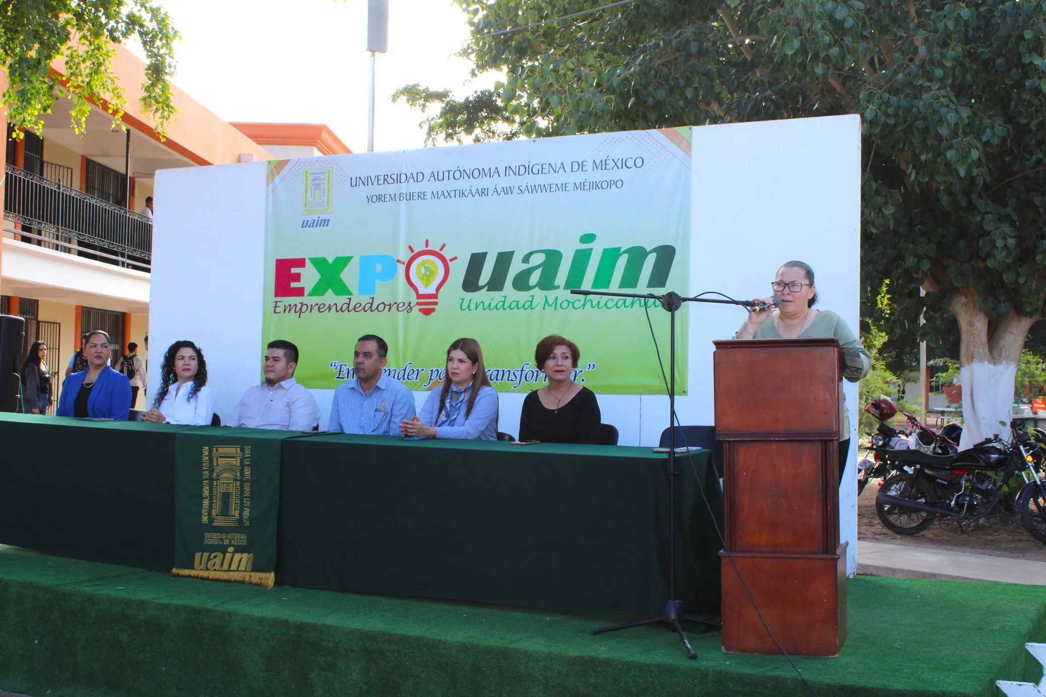 En las palabras de bienvenida, la Lic. Irma Verónica Orduño Vázquez, Directora General de la Unidad Mochicahui, expresó que la Expo Emprendedores, es un espacio para reconocer y valorar el talento, la creatividad y la visión innovadora de los jóvenes universitarios. Señaló que cada proyecto refleja no solo capacidades académicas, sino también el deseo de transformar su entorno y contribuir al desarrollo de sus comunidades. Destacó además que este evento es una muestra del espíritu emprendedor que caracteriza a la UAIM y del acompañamiento brindado por los docentes y coordinadores para impulsar iniciativas con sentido social.
