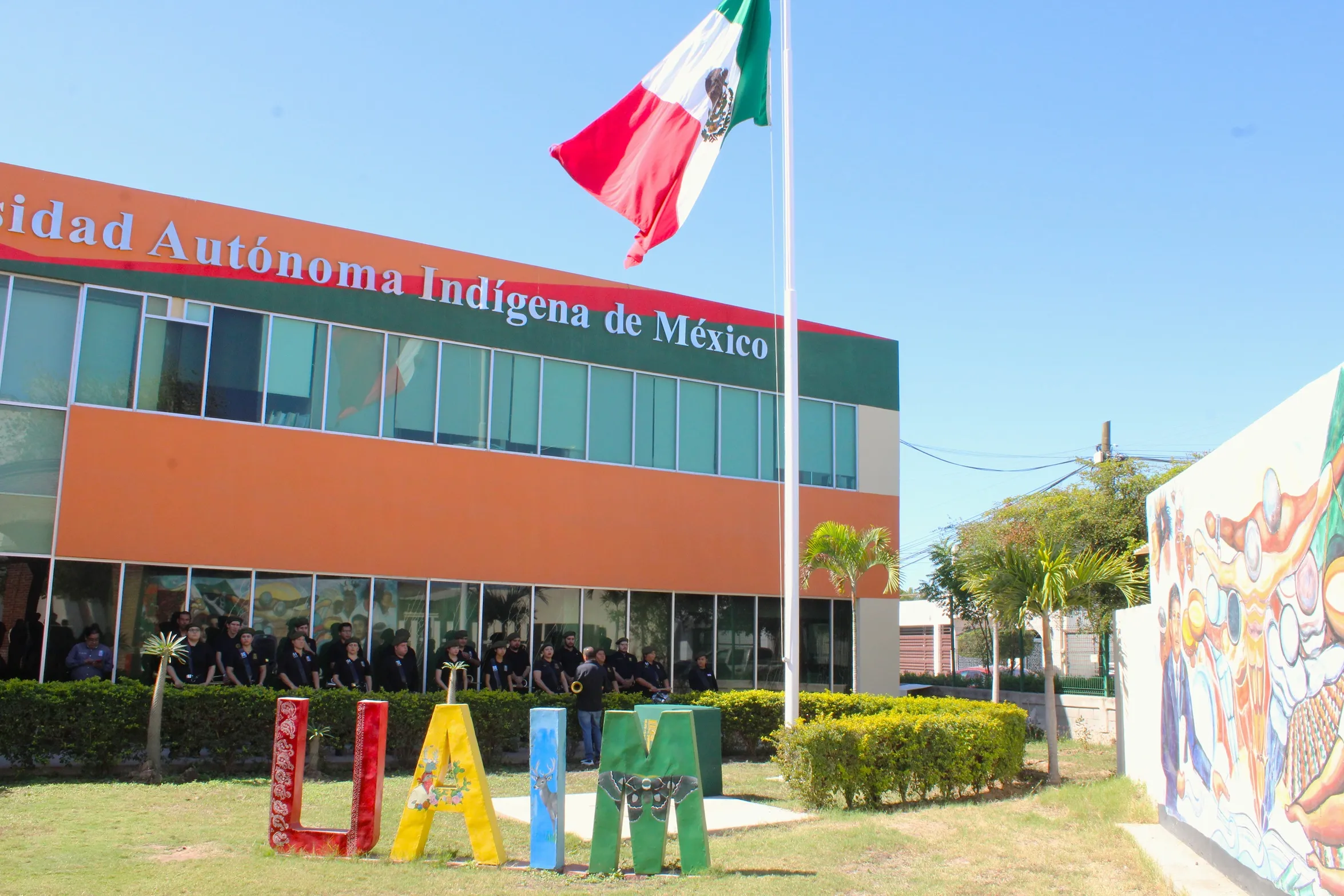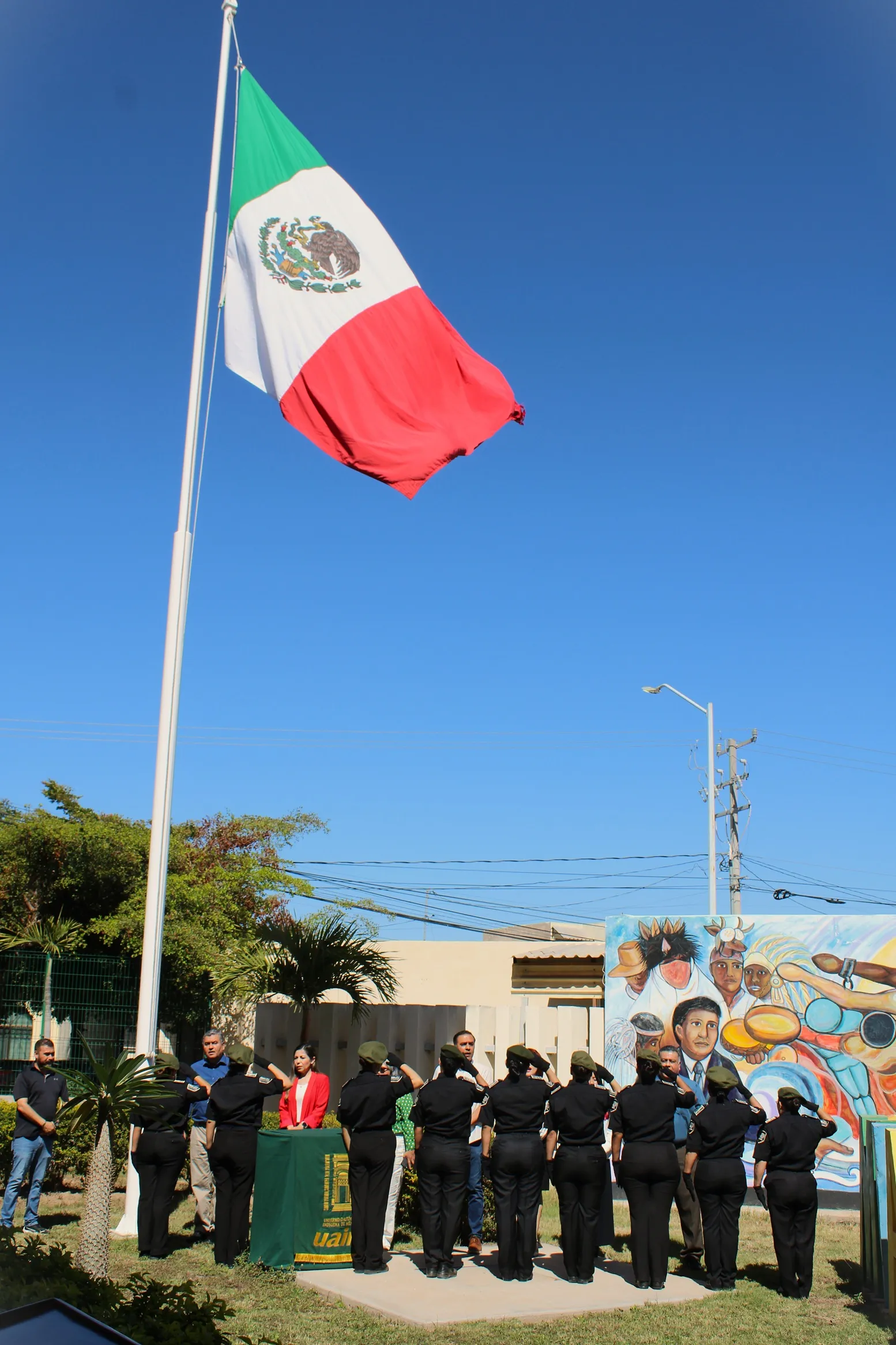 En una ceremonia solemne, la Universidad Autónoma Indígena de México conmemoró el Día de la Bandera con la presencia de la comunidad universitaria. El acto fue encabezado por el Rector, M.C. Jesús Rodolfo Cuadras Sainz, quien, acompañado de autoridades y funcionarios de la institución, llevó a cabo en el asta monumental el izamiento de la Bandera Nacional, símbolo de identidad, orgullo y unidad de todos los mexicanos.
