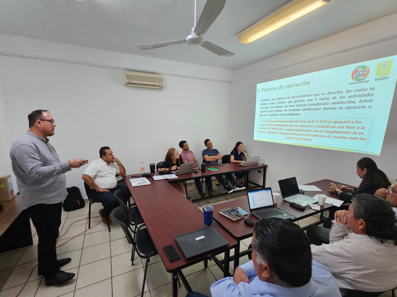 La Unidad Virtual y Unidad Los Mochis de la Universidad Autónoma Indígena de México, se suma al cumplimiento de las necesidades de las partes interesadas y mapeo de sus procesos, para ello toma el curso-taller: “Elaboración de Manuales de Procedimientos con referencia en la Norma ISO 9001:2015”, impartido por el Ing. Abel López Favela Jefe del Departamento de Gestión de la Calidad de la UAIM, el cual se realizó en la Sala 2 del edificio CIPA de la Unidad Mochicahui y en Aula 26 de la Unidad Los Mochis, con una duración de 4 horas.